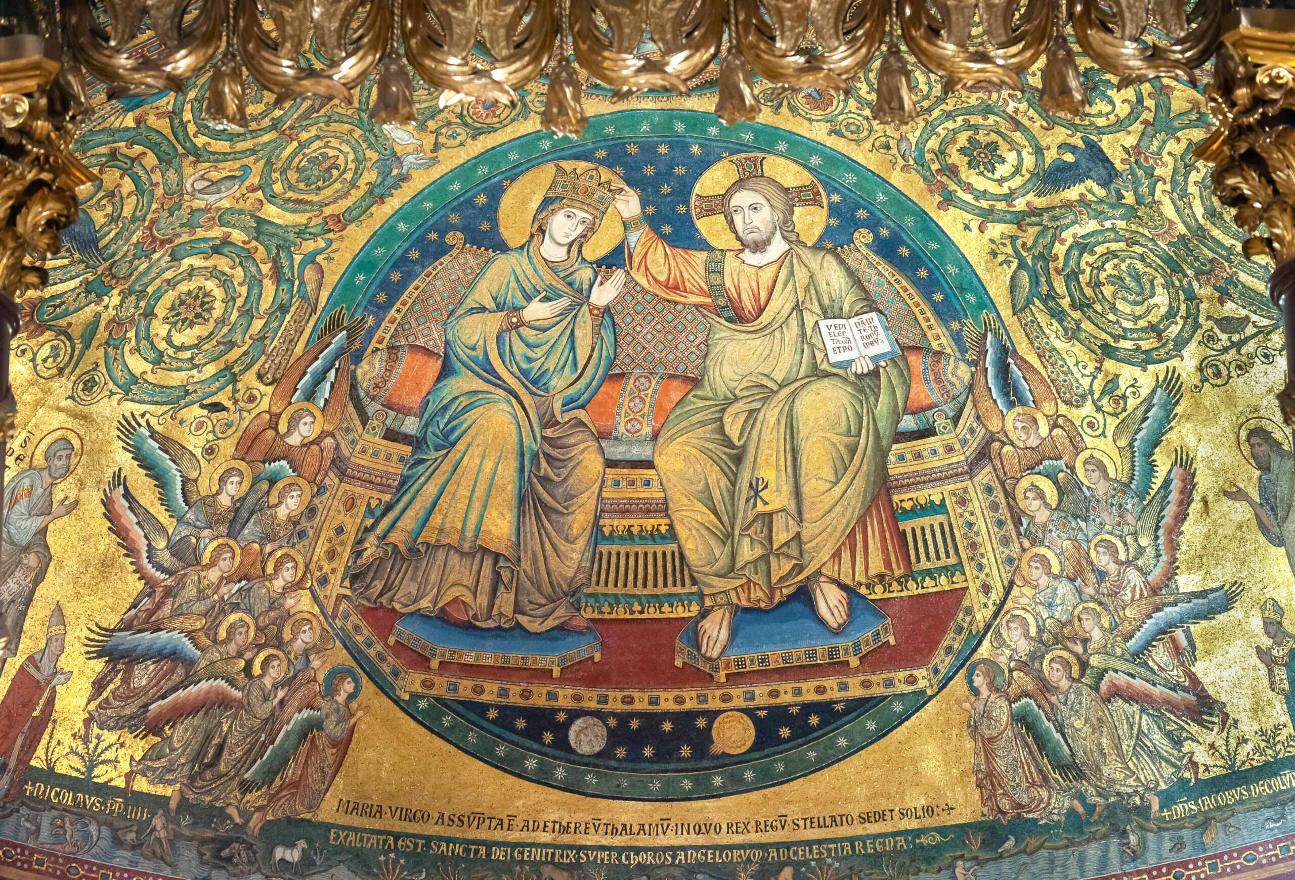 Jacopo Torriti’s mosaic, The Coronation of the Virgin Mary, inside Santa Maria Maggiore.Pulcheria’s influence continued long into the future. By the twelfth century, all the cathedrals in the West were dedicated to the Virgin Mary. A thirteenth-century mosaic built in Santa Maria Maggiore shows Mary as the Queen of Heaven, ruling next to her son in as much splendor as Pulcheria ruled from her imperial throne.